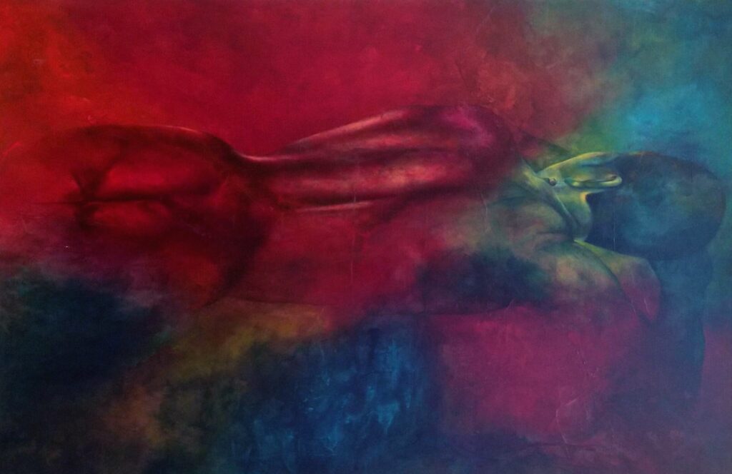 Radha Binod Sharma is a London based artist who was born in Kamalpur, Tripura, India in 1964. His mother was a well-known Indian classical Manipuri dancer and she cultivated his interest in art from an early age. He studied painting at the prestigious Kala-Bhavana, Viswa Bharoti University,Santiniketan 1989 and went on to do a masters in creative painting in the Faculty of Fine Arts, M S University, Baroda 1991. In that same year, he gained the Kanoria Studio Fellowship and in 1992 he was awarded the Elizabeth Greenshields Foundation Grant, Canada. In 1994, he achieved two awards-the Charles Wallace Trust Grant, London, and the prestigious Delfina Studio year-long residency which brought him to London where he settled. He has exhibited his art worldwide and has held many solo and group shows. His work has been successfully auctioned in Sotheby’s New York, Rosebery’s Auction House, UK. and Osian’s India.